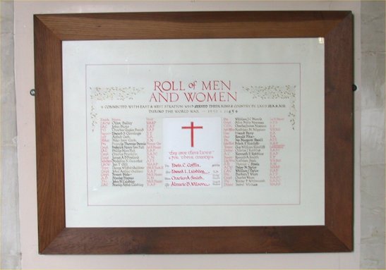 Roll of Men and Women connected with East & West Stratton who served their King and Country by Land Sea & Air during the World War - 1939 : 1945 Top centre panel - They gave their lives for their Country.