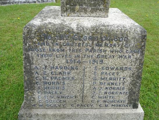 To the Glory of God and in grateful memory of those from this Parish who gave their lives in the Great War 1914 - 1919.