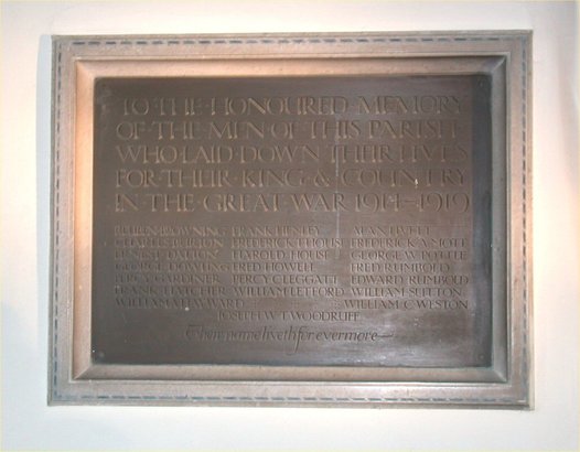 To the honoured memory of the men of this parish who laid down their lives for their King and Country in the Great War 1914 - 1919