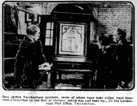 Twickenham Post Office Roll Of Honour, date approx - Taken by Birmingham Evening Despatch 31 Mar 1917