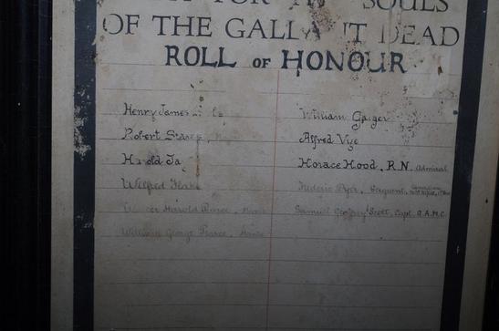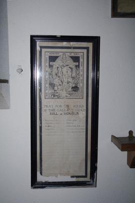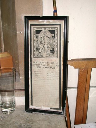 At top - And you shall hear of wars rumours of wars see that ye be not troubled. Below picture - Of your charity pray for the souls of the gallant dead Roll of Honour (Names)