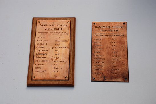 Both plaques - DANEMARK SCHOOL, WINCHESTER. In memory of those scholars who gave their lives in the War, 1939-1945 (Names)