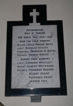 POYNTINGTON/ ROLL OF HONOUR/ THE GREAT WAR 1914 - 1918/ DIED FOR THEIR COUNTRY/ (Names)/ SERVED THEIR COUNTRY/ (Names)