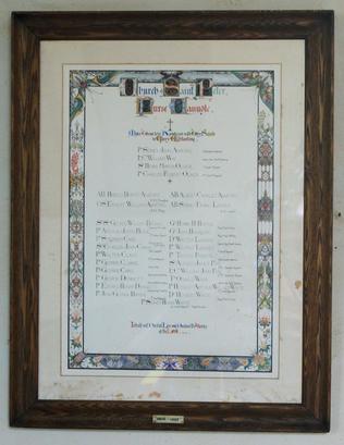Church of St Peter/ Purse Caundle/ Make Them to be Numbered with thy Saints/ in Glory Everlasting./ 1914 - 1918./ I Shall not Die but Live and Declare the Works/ of the Lord Ps.CXVIII 17.