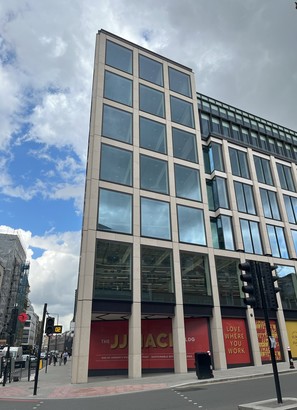 V2 Rocket 8 March 1945 - building where the memorial is located on the corner of Farringdon and Charterhouse Street - Taken by Andrew Marshall 11 May 2023