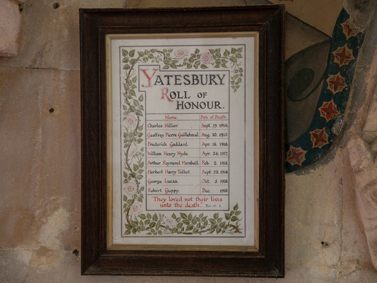 YATESBURY/ROLL OF/HONOUR./(Names)/"They loved not their lives/unto the death."