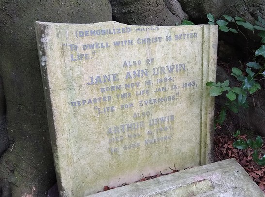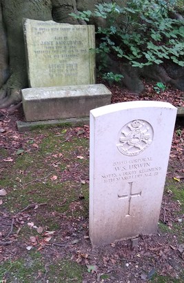 Family gravestone (damaged) + CWGC memorial in front - Taken by Robert Walton 14 Jul 2023