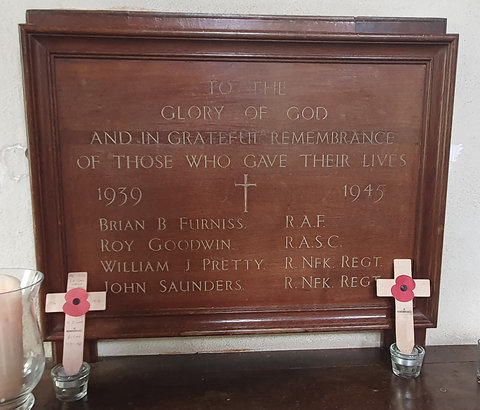 TO THE / GLORY OF GOD / AND IN GRATEFUL REMEMBRANCE / OF THOSE WHO GAVE THEIR LIVES / 1939 1945 / (Names) //