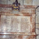 Tablet: THE MOSAIC DECORATION IN THE/ SOUTH SIDE OF THE CHANCEL HAS BEEN/ ERECTED TO THE GLORY OF GOD AND/ IN MEMORY OF THE FOLLOWING MEMBERS/ OF THE CONGREGATION WHO GAVE THEIR/ LIVES IN THE GREAT WAR 1914-1919/ (Names)/ ETERNAL REST GIVE TO THEM O LORD AND LET LIGHT PERPETUAL SHINE UPON THEM; Mosaic: TE ERGO QUAE SUMUS TUIS FAMULIS SUBVENI QUOS PRETIOSO SANGUINE REDIMISTI. AETERNA FAC CUM SANCTIS TUIS IN GLORIA NUMERARI./ TO THE GLORY OF GOD AND IN GRATEFUL REMEMBRANCE OF THOSE WHO GAVE THEIR LIVES IN THE GREAT WAR 1919.