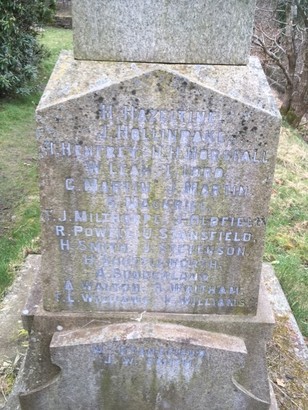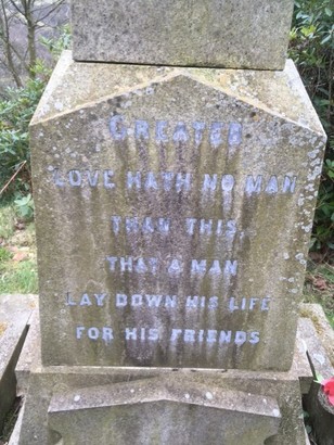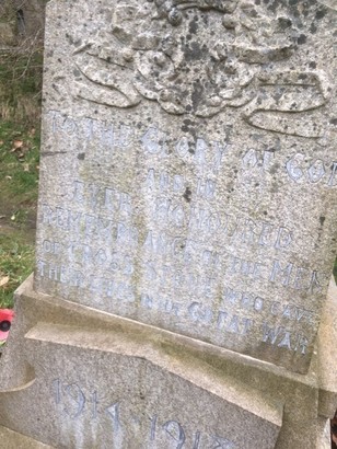 South face: TO THE GLORY OF GOD AND IN EVER HONOURED REMEMBRANCE OF THE MEN OF CROSS STONE WHO GAVE THEIR LIVES IN THE GREAT WAR 1914-1918 ; North face: GREATER LOVE HATH NO MAN THAN THIS THAT A MAN LAY DOWN HIS LIFE FOR HIS FRIENDS./ (43 Names)