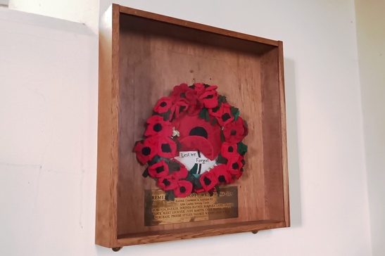 Fabric poppy wreath in mounted frame - Taken by Jennie Butler 07 Sep 2023