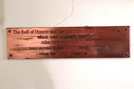 Plaque explaining removal from Aller Congregational Chapel - Taken by Jennie Butler 07 Sep 2023