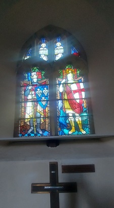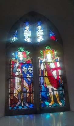 O THE GLORY OF GOD AND IN MEMORY OF OUR BELOVED SON RONALD JOHN RANULPH LEACROFT, KILLED IN ACTION ON JULY 1ST 1916, THIS WINDOW IS GIVEN BY HIS FATHER AND MOTHER