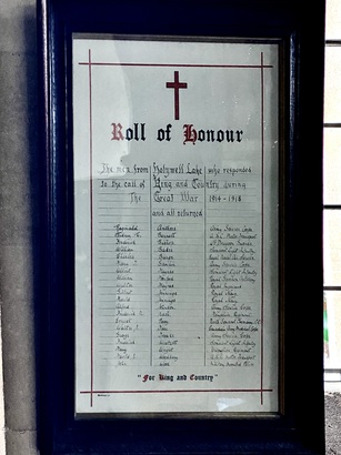 THE MEN FROM HOLYWELL LAKE WHO RESPONDED/ TO THE CALL OF KING AND COUNTRY DURING THE/ GREAT WAR 1914 - 1918 AND ALL RETURNED/ (20 NAMES)