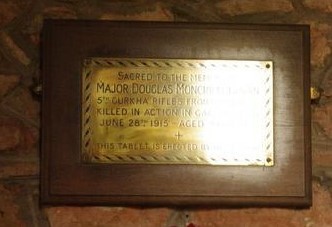 SACRED TO THE MEMORY OF/ MAJOR DOUGLAS MONCRIEFF GOVAN/ 5TH GURKHA RIFLES FRONTIER FORCE/ KILLED IN ACTION IN GALLIPOLI ON/ JUNE 28TH 1915 AGED 39 YEARS/ THIS TABLET IS ERECTED BY HIS WIDOW