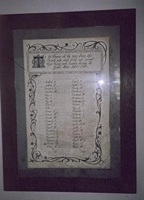 TO THE HONOUR OF THE MEN FROM THIS/ PARISH WHO WENT FORTH AND SERVED/ THEIR KING AND COUNTRY DURING THE/ GREAT WAR 1914 - 1918./ (NAMES)
