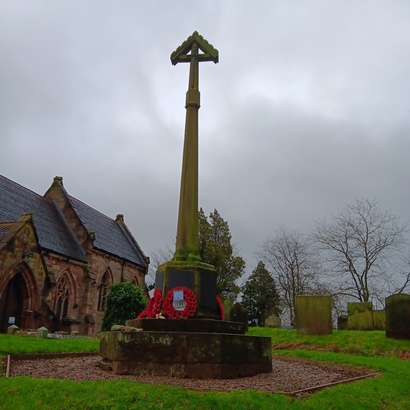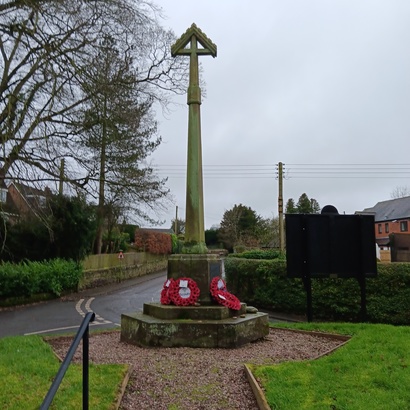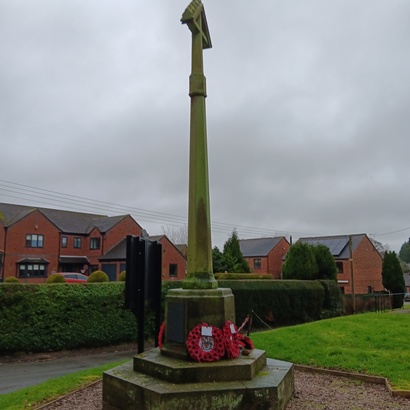 SIDE ONE: THIS CROSS/ IS ERECTED TO THE/ GLORY OF GOD/ AND IN PERPETUAL/ MERMOY OF/ THE BRAVE MEN/ WHO GAVE THEIR LIVES/ FOR GOD, KING/ AND COUNTRY/ IN THE GREAT WAR/ 1914 - 1918/ GRANT THEM, O LORD/ ETERNAL REST SIDE THREE: ALSO/ THOSE WHO FELL/ IN THE WORLD WAR/ 1939 - 1945/ (NAMES) SIDE TWO AND SIX: (NAMES)