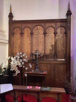 To the Glory of God and to the immortal memory of the men of this Parish who names are inscribed hereon who gave their lives to the Service of God, King & Country in the Great War 1914 - 1918
