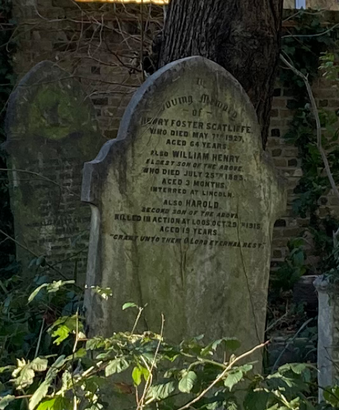 Also Harold/ Second son of the above/ Killed in action at Loos Oct 29 1915/ Aged 19 years
