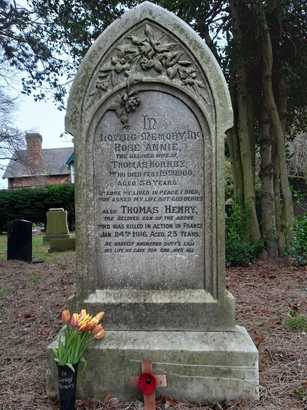 ... Also Thomas Henry, the beloved son of the above who was killed in action in France Jan. 24th 1916. Aged 23 years. He bravely answered duty's call his life he gave for one and all
