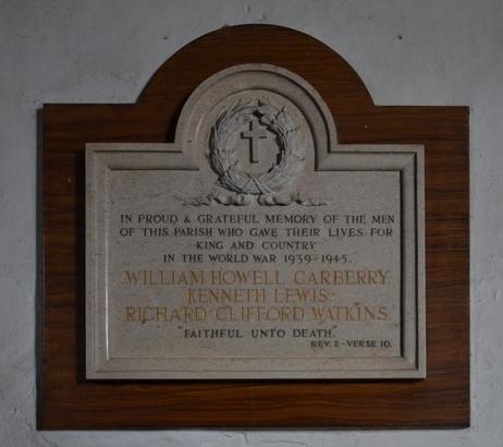 IN PROUD AND GRATEFUL MEMORY OF THE MEN / OF THIS PARISH WHO GAVE THEIR LIVES FOR / KING AND COUNTRY IN THE WORLD WAR 1939-1945 / 'NAMES] / "FAITHFUL UNTO DEATH" / REV.2 - VERSE 10
