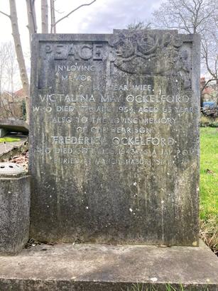 Also to the loving memory/ of our dear son/ Frederick Ockelford/ who died 30th Dec 1943 as a Jap POW/ buried at Kanchanaburi, Sian