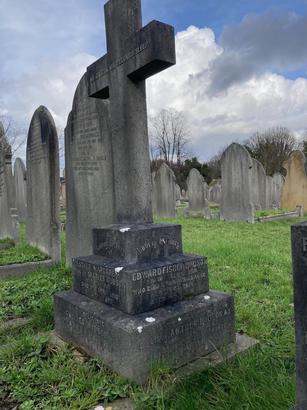 Edward Fisher Hudson/ their son/ who died and was buried at sea/ 24th Oct 1914/ aged 45 years/ Sec Lieut Arthur Hudson AI/ killed in action in France/ aged 42 years