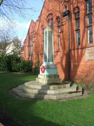 6 O'Clock Face: THIS/ MEMORIAL/ WAS/ RAISED/ TO THE/ MEMORY/ OF THE/ OLD BOYS/ OF THE/ DUDLEY/ GRAMMAR/ SCHOOL/ WHO/ LAID DOWN/ THEIR/ LIVES FOR/ THEIR KING/ AND/ COUNTRY/ IN THE/ GREAT WAR/ 1914 - 1918 3 and 9 O'Clock Faces: (NAMES).