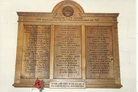 PERSHORE C OF E SCHOOL/ 1914 FORMER SCHOLARS WHO GAVE THEIR LIVES IN THE GREAT WAR 1918/ (NAMES)/ AT THE GOING DOWN OF THE SUN AND IN/ THE MORNING WE WILL REMEMBER THEM