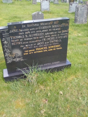 ..../THOMAS R SOWERBY, BROTHER OF THE ABOVE/KILLED AT TOBRUK 29TH NOV. 1941, AGED 21 YEARS