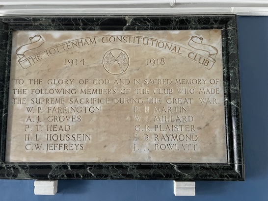 View of the plaque in its current setting - Taken by Tottenham Constitutional Club 28 May 2024