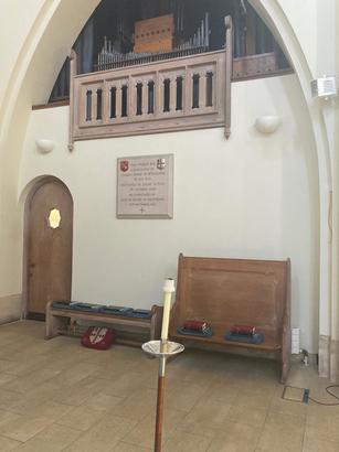 THIS CHURCH WAS/CONSECRATED BY/CHARLES, BISHOP OF WINCHESTER/1ST MAY 1845/DESTROYED BY ENEMY ACTION/2ND OCTOBER 1940/RECONSECRATED BY/MERVYN, BISHOP OF SOUTHWARK/30TH SEPTEMBER 1960