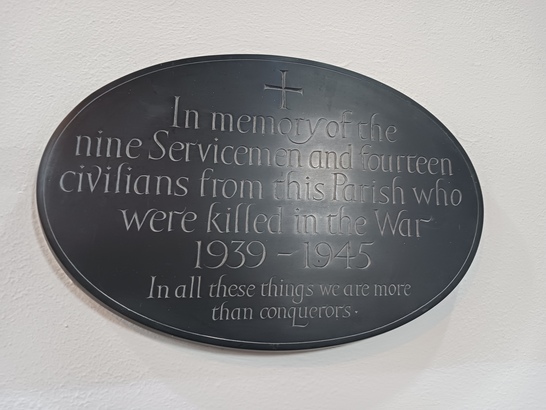 In memory of the nine servicemen and 14 civilians from this Parish who were killed in the war 1939-1945 In all these things we are more than conquerors