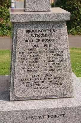 BROCKWORTH &/ WITCOMBE/ ROLL OF HONOUR/ 1914 - 1918/ (NAMES)/ 1939 - 1945/ (NAMES)/ LEST WE FORGET