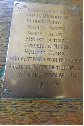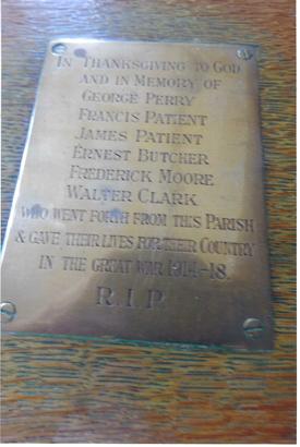 IN THANKSGIVING TO GOD/ AND IN MEMORY OF/ (NAMES)/ WHO WENT FORTH FROM THIS PARISH/ & GAVE THEIR LIVES FOR THEIR COUNTRY/ IN THE GREAT WAR 1914-18/ R.I.P.
