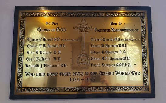 To The / GLORY OF GOD / And In / THANKFUL REMEMBRANCE OF / (Names) / WHO LAID DOWN THEIR LIVES IN THE SECOND WORLD WAR / 1939 - 1945 //