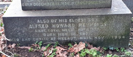 ... / ALSO OF HIS ELDEST SON / ALFRED HOWARD REYNOLDS / LIEUT. ROYAL WELCH FUSILIERS / BORN NOV. 16, 1877, / DIED AND BURIED AT MEERUT, INDIA, NOV. 1, 1904
