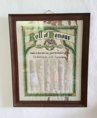 Roll of Honour / FOR KING AND COUNTRY / Names of those who have joined His Majesty's Forces / FROM / Dickleburgh with Langmere. / (155 Names) // Symbol key at base of Roll: *Killed in Action. +Died of Wounds. Missing. Died. //