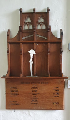 "THEIR NAME LIVETH FOR EVERMORE" / 1914-1918 / (20 NAMES) / 1936 / (1 NAME) / 1939-1945 / (8 NAMES) //
