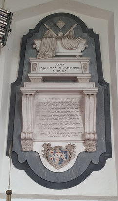 Upper tablet: ALMA, / INKERMAN, SEVASTAPOL, / CRIMEA. // Main tablet: BY THE OFFICERS OF THE REGIMENT, / HIS COMPANIONS IN THE CAMP, HIS FRIENDS IN THE BIVOUAC / HIS ADMIRERS IN THE STRIFE / THIS MONUMENT IS ERECTED TO THE MEMORY OF / HENRY WHICHCOTE TURNER, ESQ. / CAPTAIN OF THE 1ST OR "THE ROYAL" REGIMENT OF FOOT, AND / TENTH SON OF THE LATE LIEUT GENERAL CHARLES TURNER, / COLONEL OF THE 19TH REGIMENT OF FOOT AND / HARRIET / HIS WIFE, DAUGHTER OF THE VERY REV. GEORGE STEVENSON, L.C.D. / DEAN OF KILFENORA, IRELAND: / BORN SEPTEMBER 24TH. 1829, DIED MARCH 1ST. 1856, / AT KAMARA IN THE CRIMEA, AND BURIED THERE IN THE / GRAVEYARD OF THE HIGHLAND DIVISION: / HE WAS APPOINTED TO THE REGIMENT IN 1847, WAS / PRESENT AT THE BATTLES OF ALMA AND INKERMAN, / AND AT THE SIEGE OF SEVASTAPOL / SUPPORTED BY A SENSE OF DUTY, THOUGH SUFFERING / FROM A MORTAL DISEASE, THE EFFECTS OF HIS EXERTIONS / IN THE TRENCHES, HE BORE THE SEVERITIES OF THE / CLIMATE AND THE HARDSHIPS AND PRIVATIONS OF THE WAR, / WITH THE FORTITUDE AND CHEERFULNESS / OF A CHRISTIAN SOLDIER. / THIS MONUMENT, WHILE RECORDING HIS RESTING PLACE / IN A DISTANT LAND, IS DESIGNED TO REMAIN TO HIS / FAMILY AND FRIENDS A CHERISHED MEMORIAL / OF HIS WORTH AND VALOR.