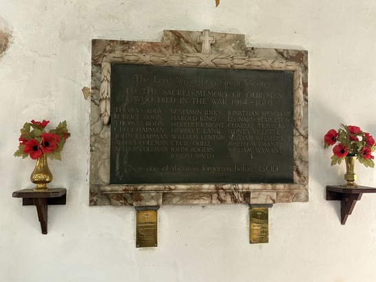 St. James the Great Church WW1 tablet in context on the south wall of the nave - Taken by ©2025 Colin Murray 08 Mar 2025