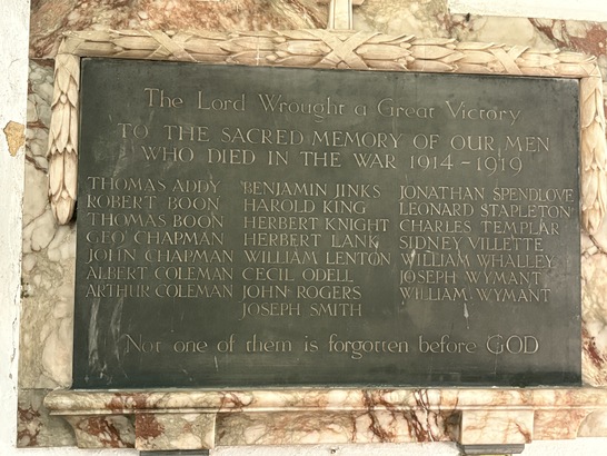 St. James the Great Church WW1 tablet detail - Taken by ©2025 Colin Murray 08 Mar 2025