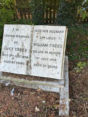 Left Hand Side- IN/LOVING MEMORY/OF/LUCY CREES/DIED 2ND JULY 1968/AGED 82 YEARS; Right Hand Side-ALSO HER HUSBAND/2ND LIEUT/WILLIAM CREES/KILLED IN ACTION/1ST JULY 1916/AGED 34 YEARS