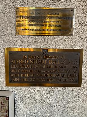 IN LOVING MEMORY OF/ALFRED STUART DALLAS/LIEUTENANT ROYAL FIELD ARTILLERY/ONLY SON OF LT COLONEL & MRS C M DALLAS/WHO DIED AT SECUNDERABAD INDIA/ON THE 30TH JAN: 1921 AGED 25`