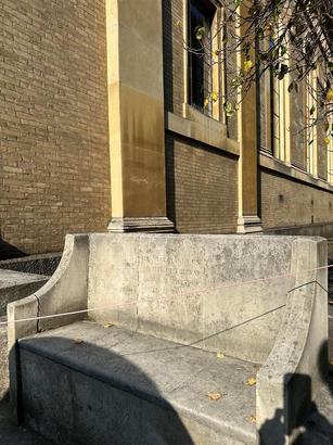 This seat stands on/ the site of the war/ memorial 1914-1918/ destroyed by enemy/ action April 16th 1941