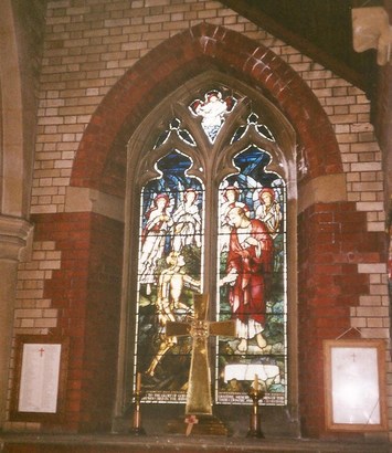 St Luke's window with WW1 RoH to the left and WW2 RoH to the right,. - Taken by Major R Coleman 07 Sep 2004
