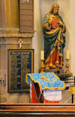 Statue - IN MEMORY OF THOSE KILLED 1914 - 1918. Board - ROLL OF HONOUR / (54 Names in 2 columns)